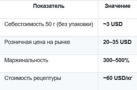 А если заменить часть дорогих пептидов и экстрактов стволовых клеток на доступные растительные активы — себестоимость падает на 20–25%, а продукт становится доступным в сегменте 15–20 USD